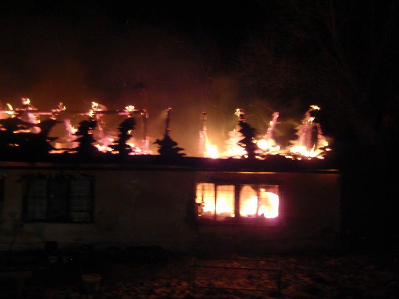 Požár domu u řeky Moravy zpozorovali v sobotu večer svědci, kteří jej ohlásili na tísňovou linku. "Hned od začátku bylo jasné, že je požár rozsáhlý. Plameny zasáhly celou střechu domu, jehož horní podlaží se po čase propadlo. Dispečer proto poslal k ohni více vozů," řekl Mitáček.
