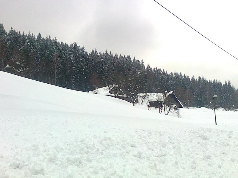 Až na jednu propadlou střechu zanedbaného stavení zatím sníh další škody ve Velkých Karlovicích nenapáchal, při pohledu na přetížené střechy tak rozhodně stojí za to držet místním palce, aby jim případný déšť ještě neztížil obrovské bílé nánosy na střechách obydlí.