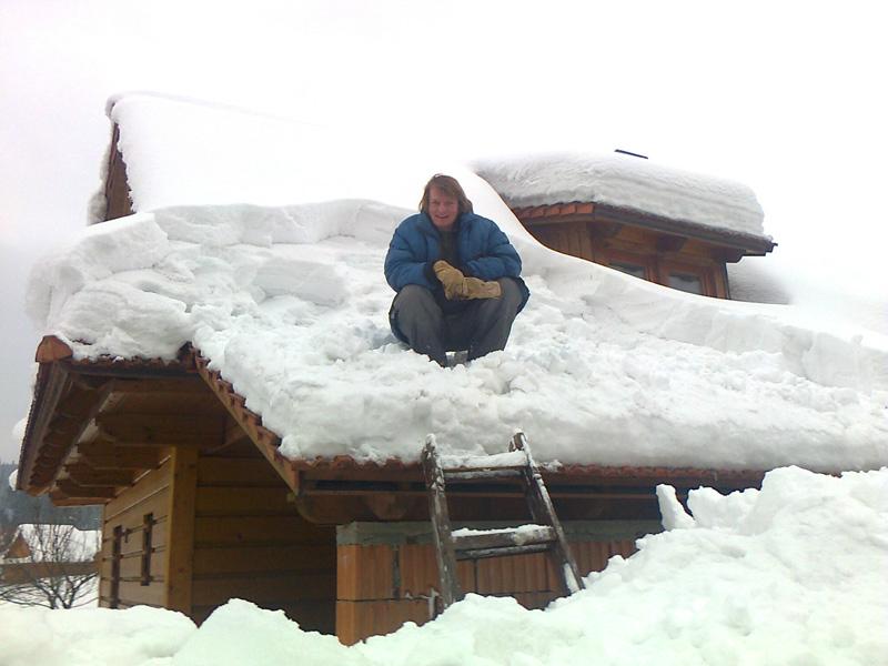 „Je mnohem důležitější udělat si teď víkendovou pracovní směnu, než na jaře opravovat celý objekt," směje se s lopatou ze své střechy Aleš Gelnar. Tak jako on, mají víkend bez lyží zato s lopatami, desítky jeho spoluobčanů.