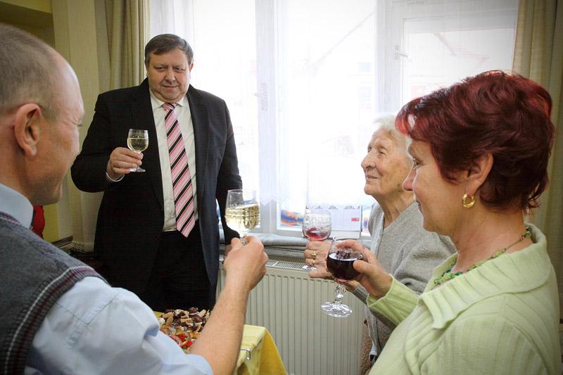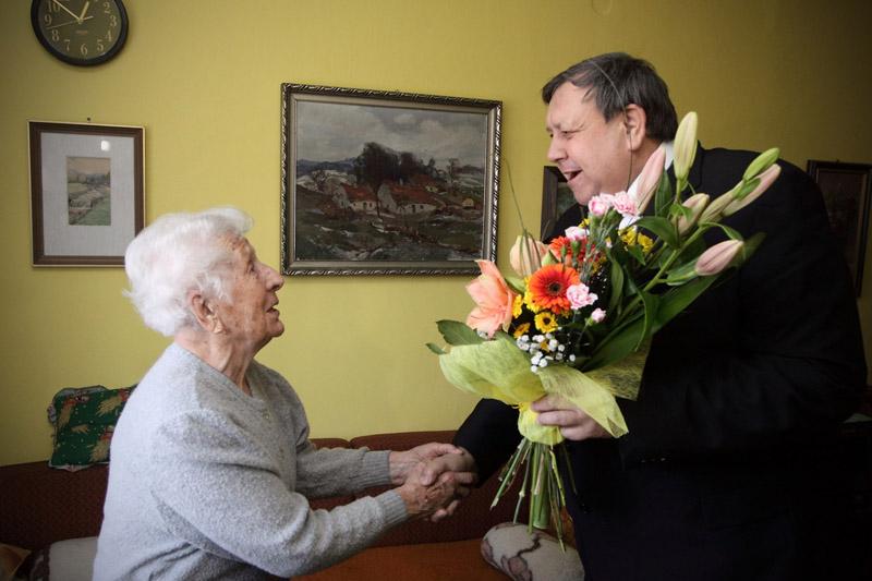 Popřát jí jako mnoho dalších přijel hejtman Zlínského kraje Stanislav Mišák i blízcí z rodiny a obce. „Pane hejtmane pěkně vypadáte, Vy mládnete,“ smála se. A měla k tomu důvod. Loni jí totiž právě on zprostředkoval operaci očí u MUDr. Stodůlky ve Zlíně, místo tehdejších 14 dioptrií má dnes nejstarší obyvatelka kraje pouhou jednu a klidně se může věnovat třeba své oblíbené četbě, anebo sledování televize.