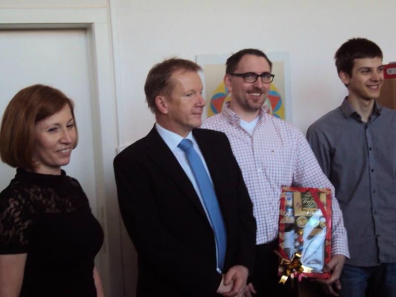 Pogratulovat svému učiteli informatiky přišli nejen jeho studenti, ale také krajský radní Josef Slovák, vedoucí Odboru školství, mládeže a sportu Zlínského kraje Stanislav Minařík i ředitelka školy Alena Štachová.