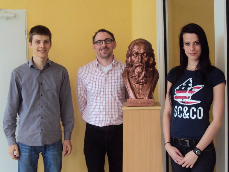 Mimochodem ve škole mají dvě busty bronzového „učitele národů.“ Zatímco Jan Ámos Komenský se na nich tváří hodně smutně, jeho zlatý následovník se směje a rozdává dobrou náladu.