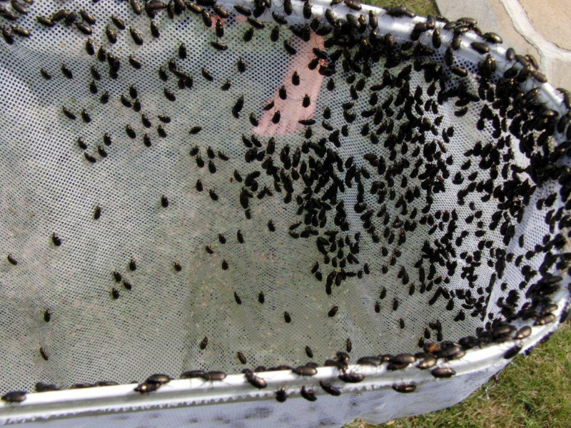 Problémy mají lidé v nové zástavbě. Třeba Ivana Pijáčková odstraňuje nánosy černých brouků z trávníku a také z bazénu. "Zatím je nijak nehubíme, vracím je za plot, odkud se k nám zřejmě rozšířili z nedalekého pole," říká se síťkou v ruce. U Pijáčků se zastavují sousedi, stejně jako majitelé tohoto rodinného domu mají černé návštěvníky i na fasádách domů, první z nich se dokonce dostali třeba do garáží.