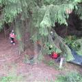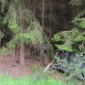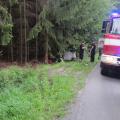 "Auto vyjelo mimo komunikaci a skončilo převrácené na okraji lesa. Zraněný spolujezdec byl v době příjezdu hasičů mimo vrak vozidla a v péči svědků nehody. Řidič zůstal ve vraku zaklíněn a v bezvědomí. Hasiči mu spolu s lékařem, který náhodně projížděl místem nehody, okamžitě poskytli předlékařskou pomoc, zajistili jeho krční páteř a po zafixování na páteřní desku ho z vraku vozidla vytáhli. V poskytování pomoci oběma zraněným pokračovali všichni hasiči, svědci i lékař i po příjezdu zdravotnické záchranné služby. Záchranáři si zraněné převzali do své péče a převezli je k dalšímu ošetření do nemocnice," popsal nehodu Netopil.
