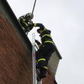 "Rychle žebře a na střechu, ale buďte ostražití," posílá velitel zásahu nahoru dva své muže.