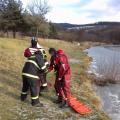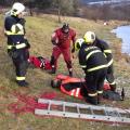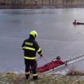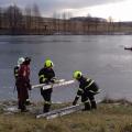 "Podle připraveného scénáře došlo ke zranění bruslaře, který zůstal bezvládně ležet na zamrzlé hladině nádrže. Nedostatečná tloušťka ledu spojená s rizikem prolomení zabránila svědkům zraněného zachránit. Proto byli na místo vysláni profesionální hasiči. Obě jednotky dorazily na místo hlášené události současně, 14 minut po ohlášení na tísňovou linku krajských hasičů," řekl Netopil.