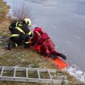 Z cvičných důvodů hasiči celou akci ještě jednou zopakovali. Tentokrát k přiblížení a záchraně muže využili nastavovací žebřík. Mimo těchto improvizovaných prostředků mají profesionální hasiči ve své výbavě i speciální nafukovací lávky, které jsou určeny k bezpečnému pohybu po zamrzlých plochách. K záchranným akcím lze využít také člunů.
