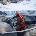 Ještě než osobní vozidlo sjelo do vody, poškodilo autobusovou zastávku. Po příjezdu jednotky z Otrokovic hasiči vyprostili havarované vozidlo a odstranili poničenou střechu zastávky, která by mohla být nebezpečná.