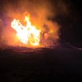 V době příjezdu jednotek na místo byl objekt kompletně v plamenech a požár se již rozšířil i na okolní trávu. Hasiči natáhli útočné vodní proudy a oheň dostali do deseti minut pod kontrolu. Postupným rozebíráním konstrukce a proléváním ohnisek vodou byl podle informací velitele v 00:37 hodin požár zlikvidován. Na místě byla následně ponechána ještě dobrovolná jednotka na hodinovou dohlídku, kvůli vyloučení nebezpečí opětovného rozhoření.
