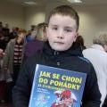 Malý Honza Mikel nehleděl na tu slávu a už se orientoval v regálech. "Já mám moc rád knížky o dinosaurech, snad tady něco takového najdu," povídá malý čtenář.