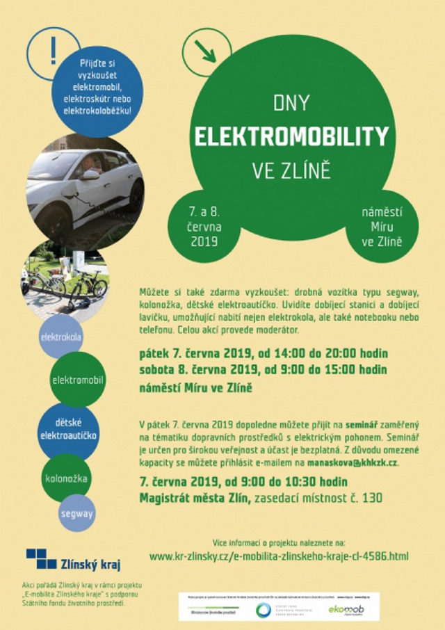 Akci pořádá Zlínský kraj v rámci projektu E-mobilita Zlínského kraje s podporou Státního fondu životního prostředí.