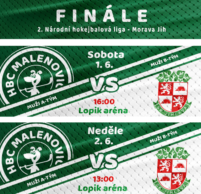Sobotní úvodní finálová bitva HBC Malenovice proti SK Jihlava B začíná v 16:00. V neděli je stanoven začátek utkání na 13:00.