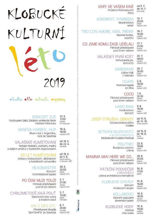 „Klobucké kulturní léto zpestří prázdninové měsíce nabitým programem, na který srdečně zveme všechny místní i přespolní. Přijďte si užít pohodové hudební podvečery i filmová promítání pod širým nebem, pobavte se s přáteli na festivalech, při divadelním představení nebo u koncertů a užijte si krásnou dovolenkovou sezónu," pozvala starostka Eliška Olšáková.